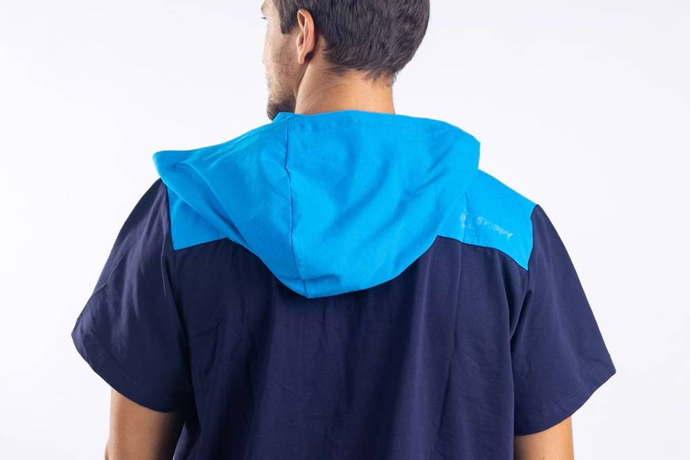 - Hood to keep your neck warm (when it’s really cold outside) and a small breast pocket in a contrasting colour