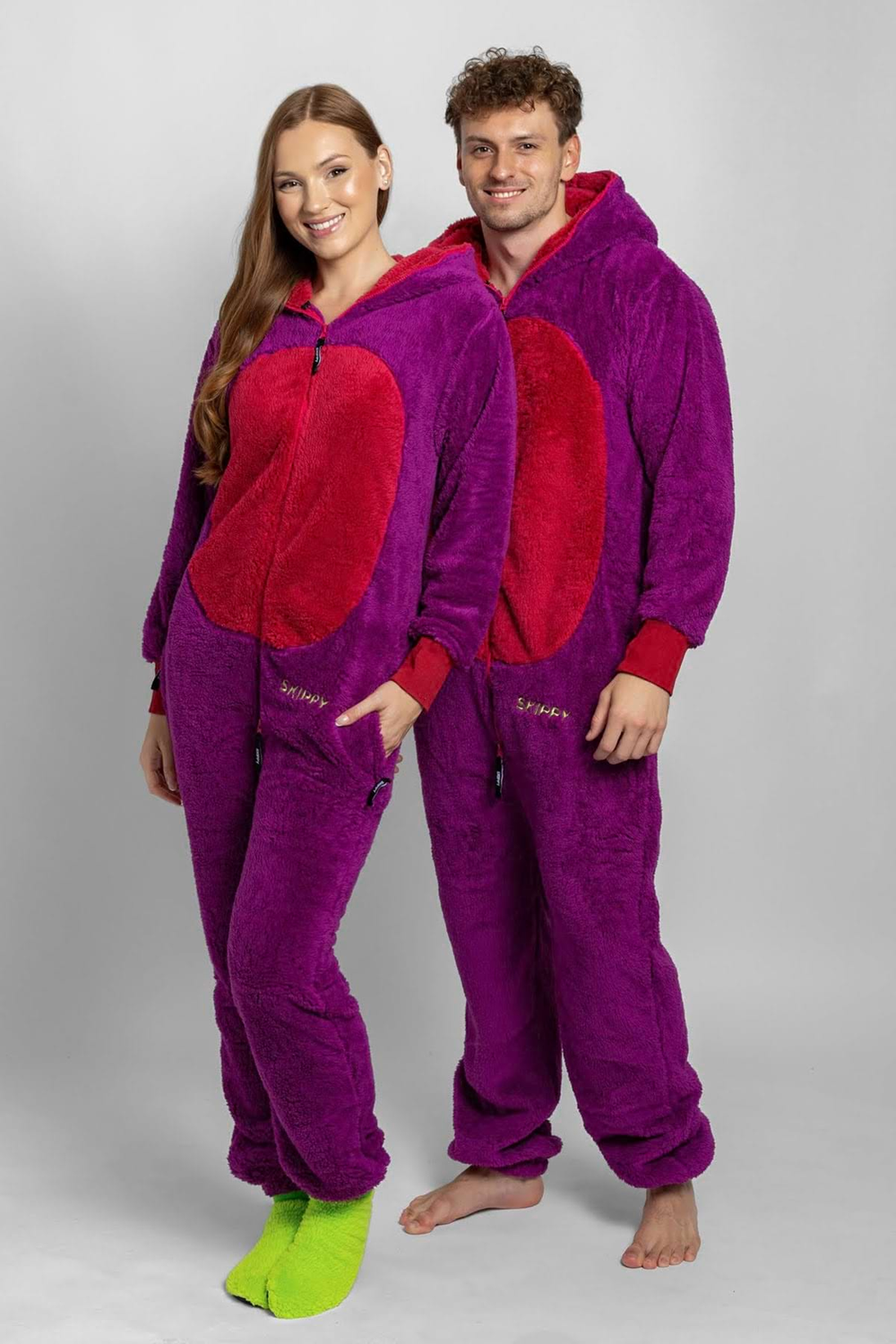 Each onesie comes with a pair of slippers with non-slip soles as a gift.